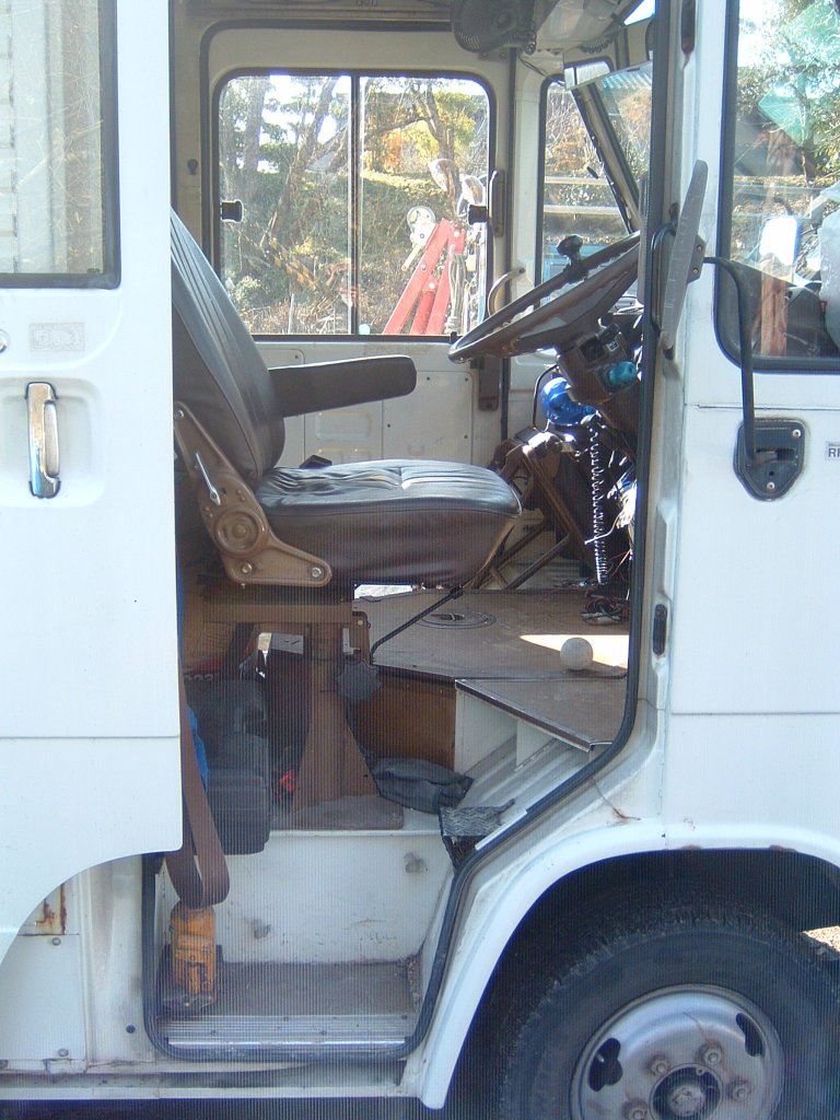 トヨタ・トヨエース・クイックデリバリー(BU60VH型 - 1986年)_09運転席のスライドドアを開けると、高い位置にドライバーズシートが設けられています。