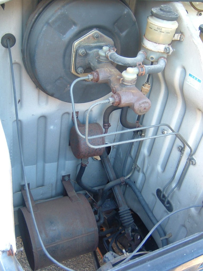 トヨタ・トヨエース・クイックデリバリー(BU60VH型 - 1986年)_24こちらは、ブレーキマスターシリンダ/倍力装置が収まっているところ。他とは区切られていて、下は空洞になっていました。