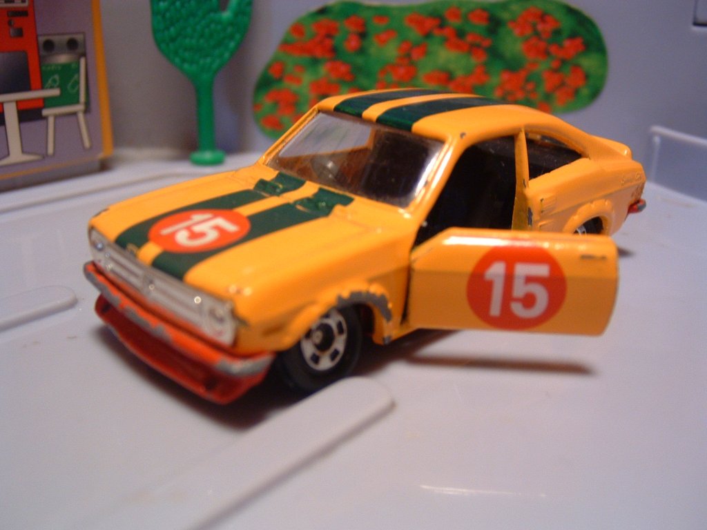B110サニー・クーペに、オーバーフェンダー、チンスポイラーと云えば、TSレース仕様で、トミカのこの黄色いカラーリングは、やはり「マルゼンテクニカ」カラーを意識しているのでしょう。