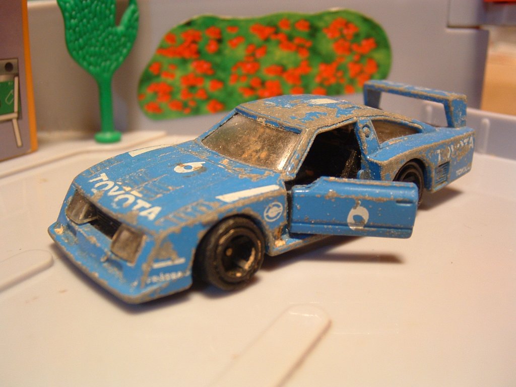 セリカがベースのグループ5仕様と云えば、ドイツ、シュニッツァー社が製作した初代セリカ・リフトバックベースの青いセリカ・ターボが有名ですが、日本のレーシングカーコンストラクター、童夢がシュニツァー仕様をお手本にRA40系セリカ(2代目セリカ)をベースに製作したと云われているのが童夢セリカで、そのトミカもありました。フロントマスクやルーフ形状、リヤウイングに微妙な違いがあります。