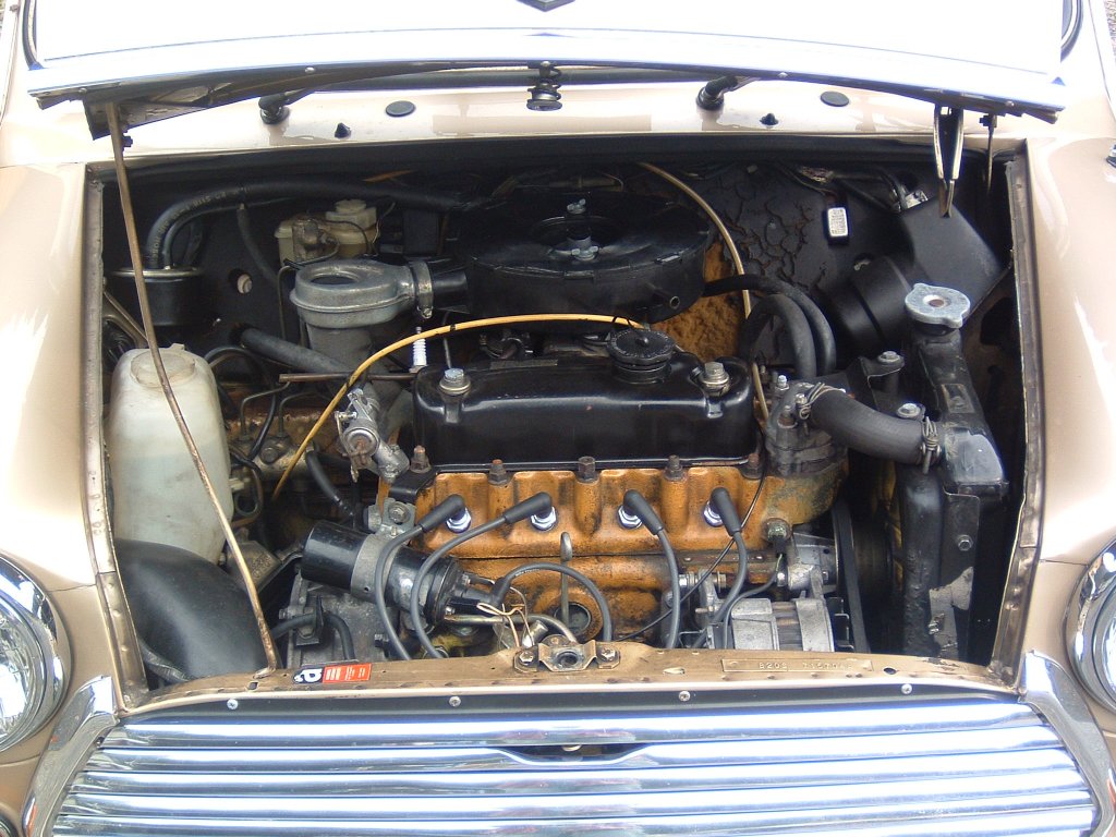エンジンは、ミニ1000に定番の998cc、水冷式直列4気筒OHVです。