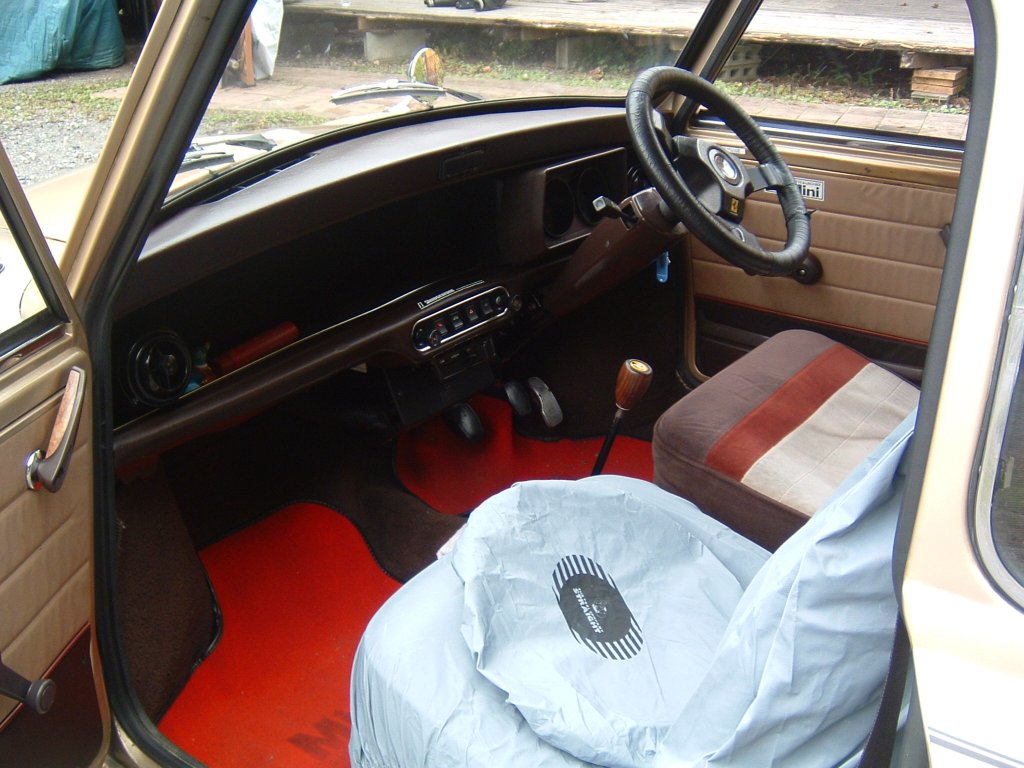 室内は、余計な物が着いていないので以外に広く、ミニに乗ると、現代の日本の乗用車には、なんて余計な物が沢山着いているのだろうということに気がつかされ、それらのせいで室内の広々感が失われていることが判ります。